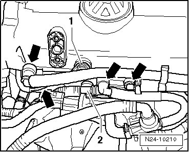 - Disconnect the connecting hose - 1 - for the crankcase ventilation from the cylinder head cover.