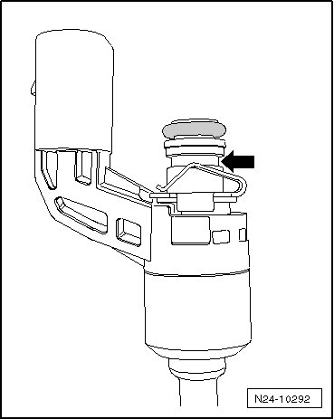 • If fuel rail is removed, the fuel injector springs - arrow - must be replaced.