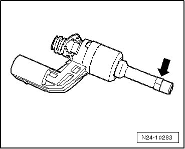 - Press the fuel injector by hand into the cylinder head bore until it stops.