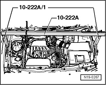 - Raise the engine using (10 - 222 A) and secure it with new bolts, tightening them by hand.