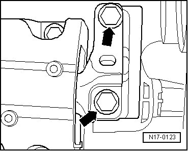 • The casting edge on the engine mount bracket - 2 - must be parallel to the engine mount arm - 1 -.