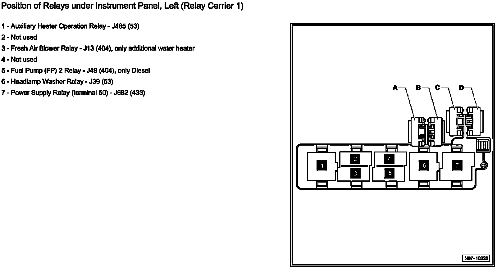 Position Of Relays Under Instrument Panel, Left (Relay Carrier 1):