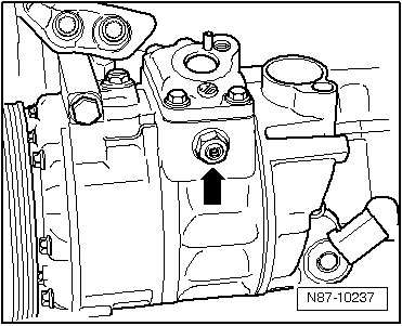 • The pressure relief valve - arrow - has operated when refrigerant oil is found in the close vicinity.