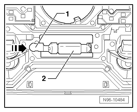 - Push contact plate - 1 - of Front Interior Lamp (W1) in - direction of arrow - and remove soffit - 2 - together with contact plate out of mount.