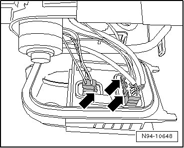 - Disengage the harness connectors - arrows - and disconnect the connectors.