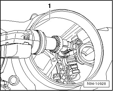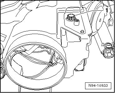 - Guide the headlamp beam adjustment motor - 1 - in the disengaged position completely into its mount.