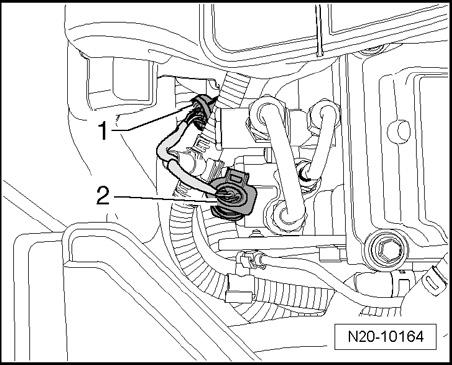 - Disconnect 3-pin connector -2- from Low Fuel Pressure Sensor -G410-.
