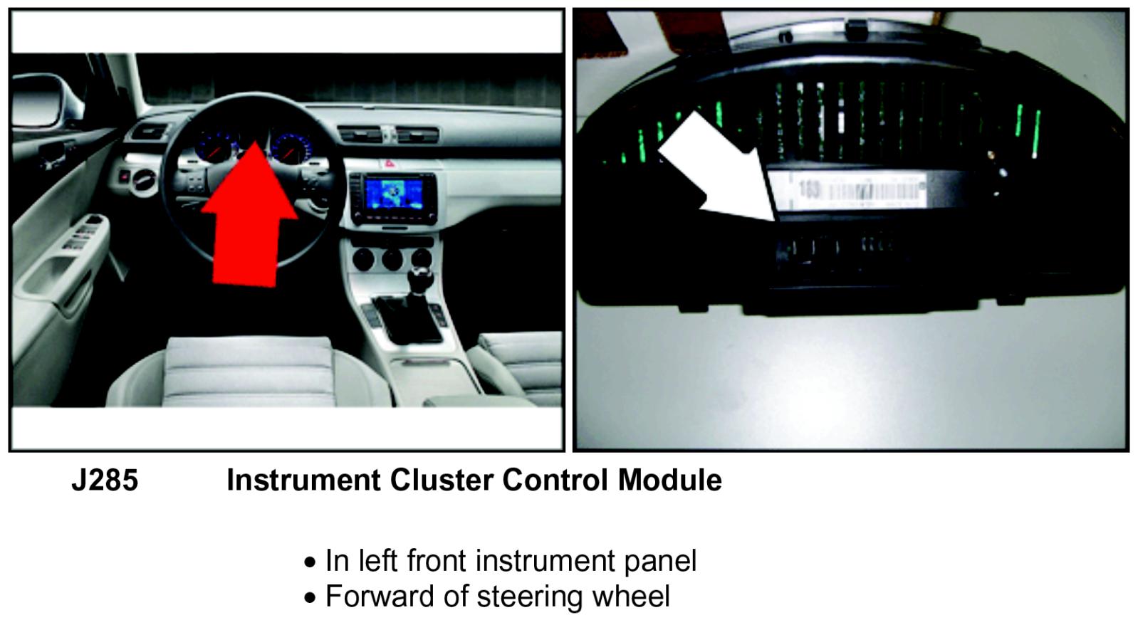 Instrument Cluster -K- / Instrument Cluster Control Module -J285-, Photo Location