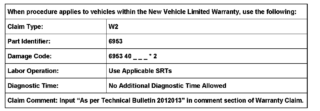 2012013 Supersedes T.B. Group 69 number 06-06 dated June 9, 2006 due to updated VIN breaks.