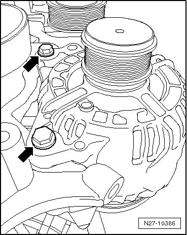- Remove mounting bolts for generator - arrows -.