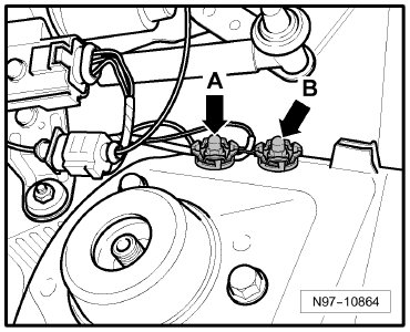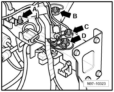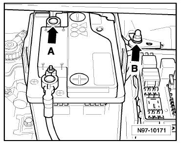 (12) - Ground Connection (in engine compartment, left) -Arrow B-
