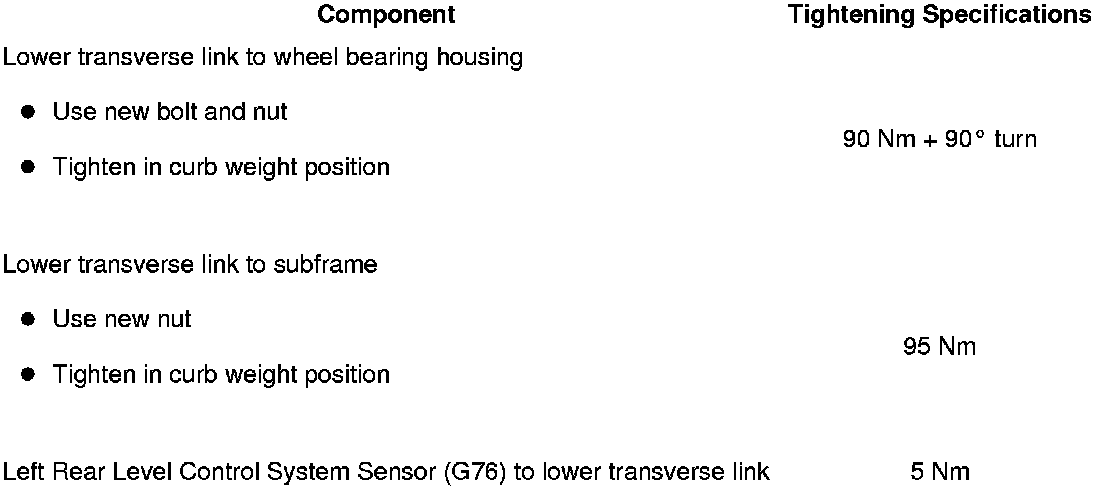 - Insert lower transverse link into vehicle and tighten the bolts by hand.