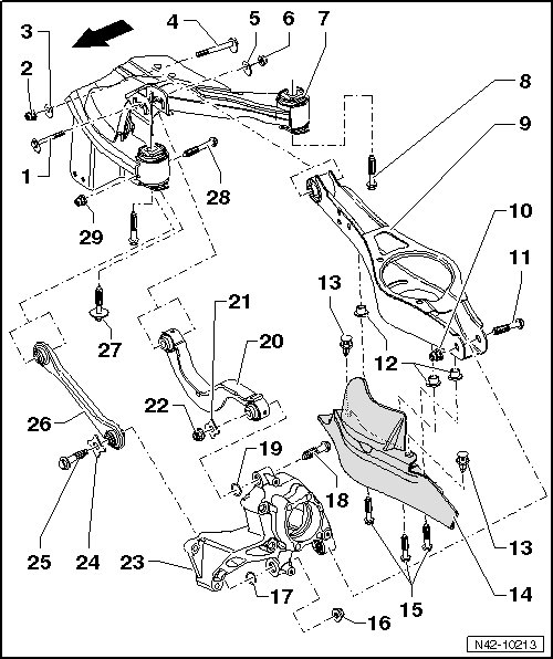 • Always tighten threaded connections in curb weight position. Refer to => [ Rear Axle in Curb Weight Position ].