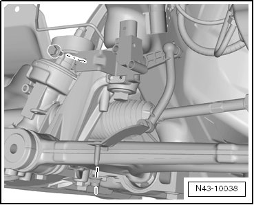 • In order to be able to remove the left front level control system sensor the steering wheel must be turned all the way to the right; this assures that there is enough clearance between the control arm and the stabilizer bar.