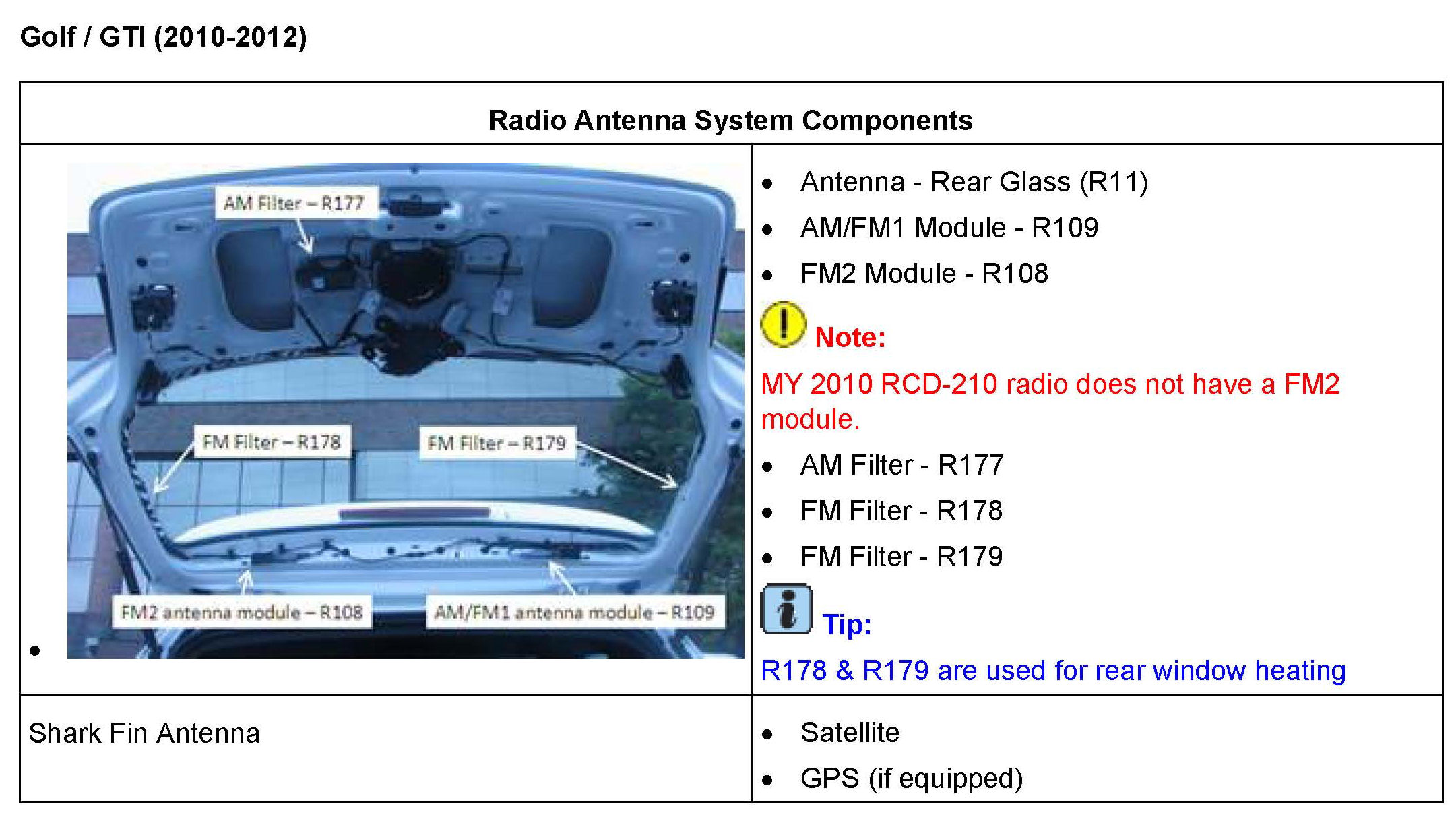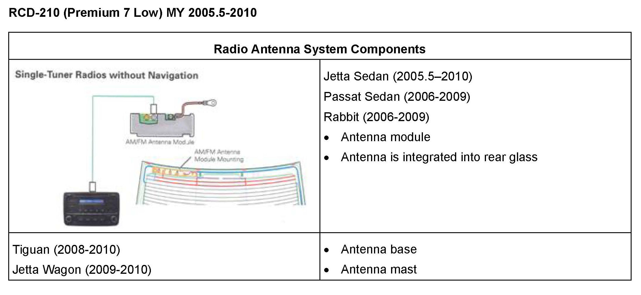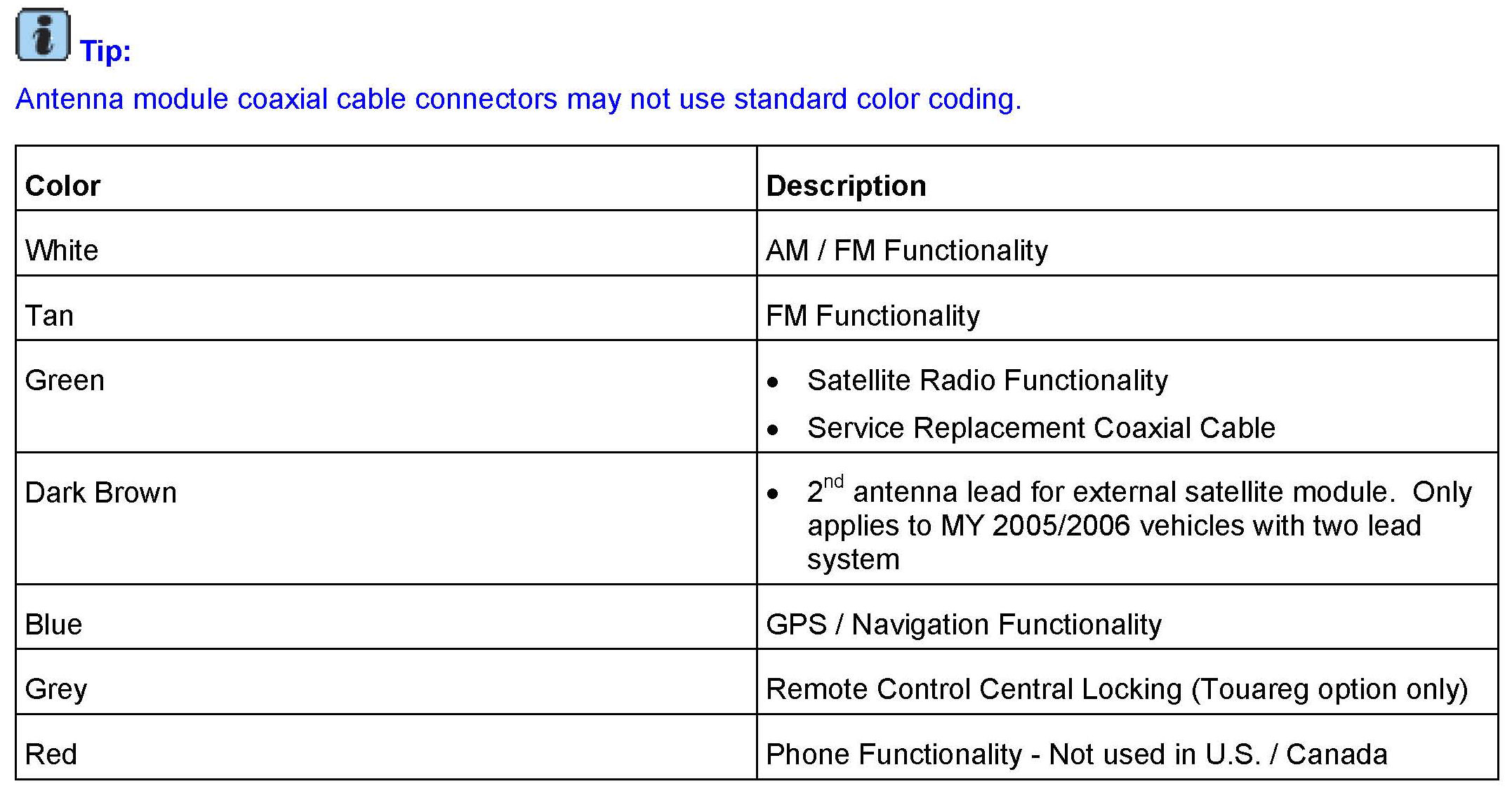 ^ Radios with internal satellite receiver: Is a message displayed on screen stating Satellite radio not available"? This indicates a radio concern. Swapping a known good similar radio is an easy check to confirm the radio is the problem. Applies to RNS-510, RNS-315, RCD-510, RCD-310 (with sat).