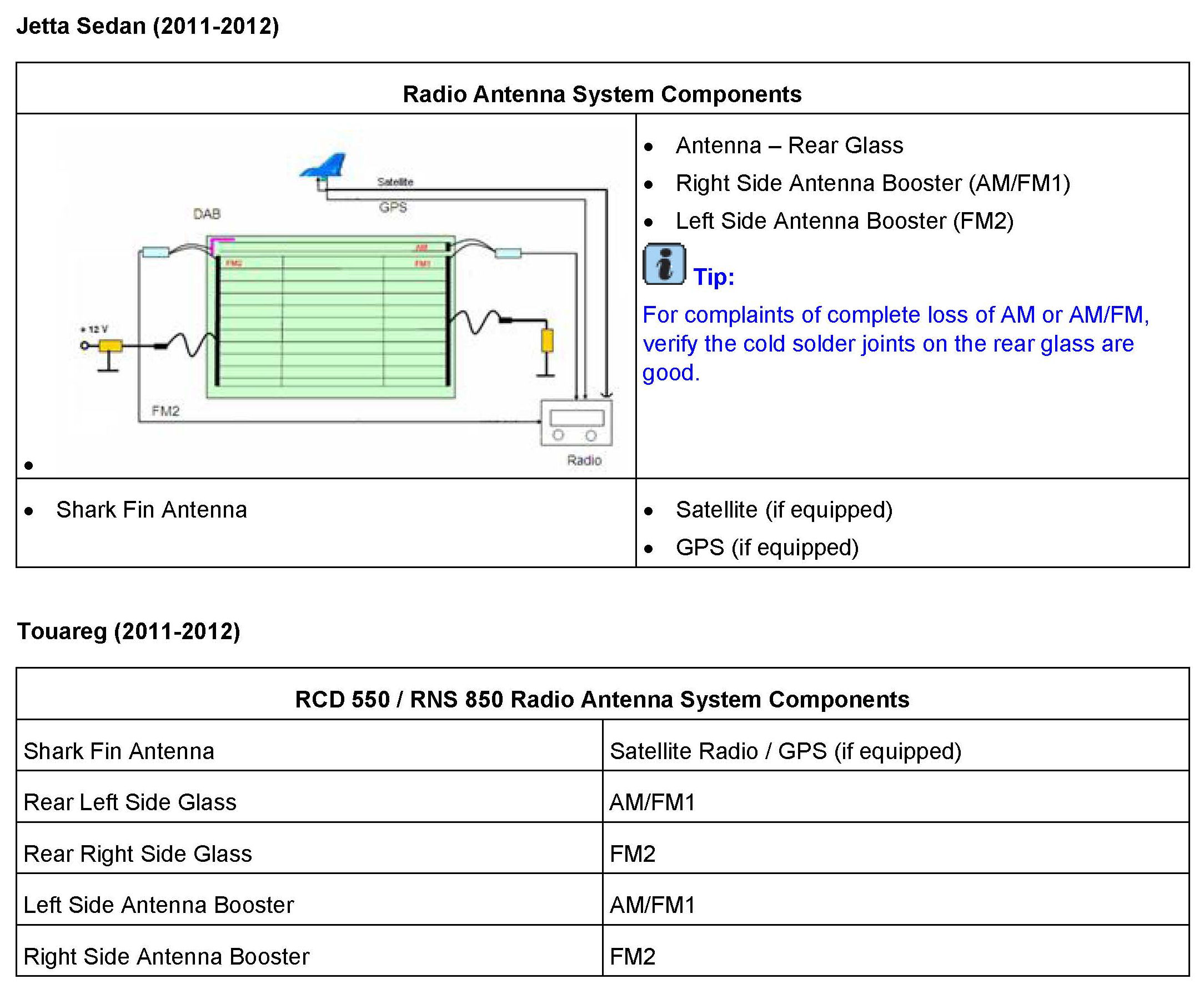 ^ Are antenna fault codes stored in the radio/navigation unit related to the customer complaint? Use GFF test plans to narrow down the concern.