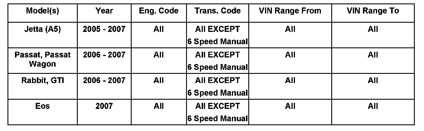 If vehicle is equipped with 6 speed manual transmission (MQ350), see Technical bulletin Instance number 2015981 in ElsaWeb.