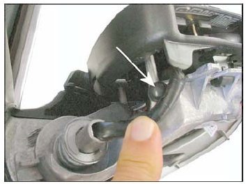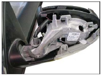 - Applying an adhesive backed bumper, Part No: ZVW269008, will prevent the wire harness from interfering with the proper installation of the mirror housing cover. See ElsaWeb - Repair Manual, BODY, Body Exterior, 66 Exterior equipment, Exterior rearview mirror for housing disassembly.