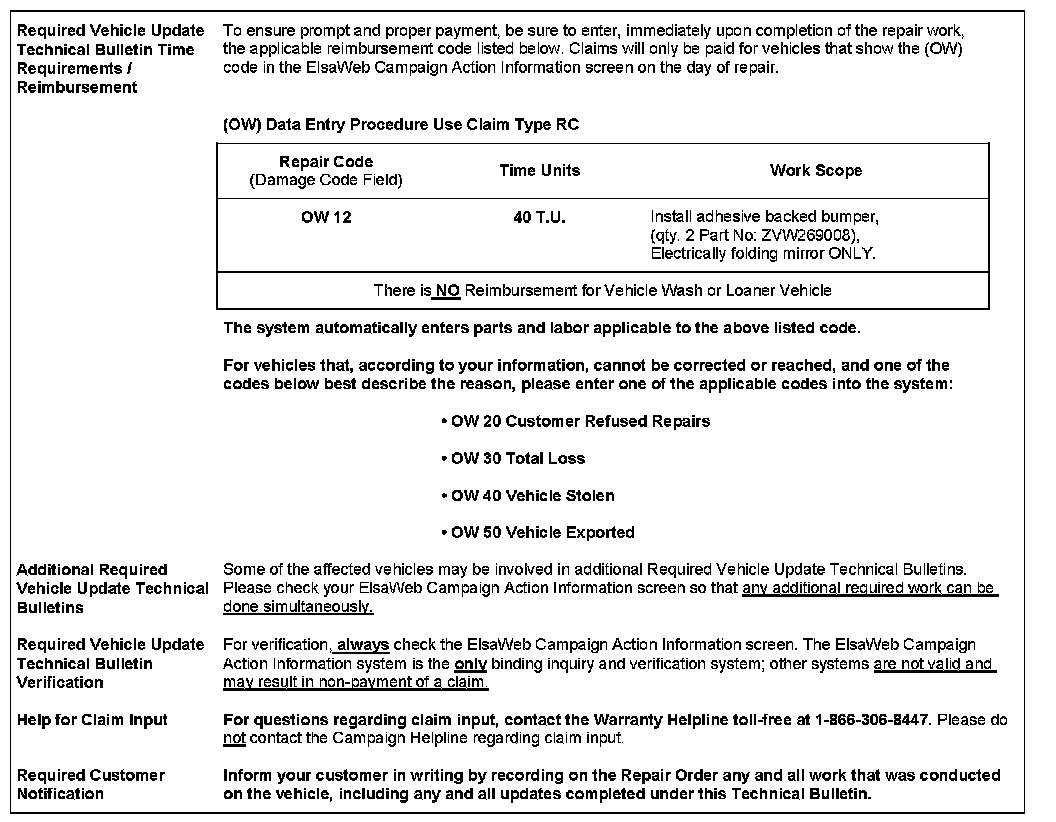- Procedure is valid only for vehicles that show the (OW) code open on the ElsaWeb Campaign / Action Information inquiry screen on the day of repair.