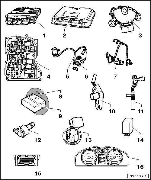 • Components can be checked in "Guided Fault Finding" using the (VAS 5051). Refer to => [ Vehicle Tester, Connecting and Selecting Functions ] Scan Tool Testing and Procedures.