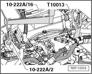 - To ensure the rear engine support bridge spindle has sufficient clearance, remove the intake hose from the throttle valve unit and lay aside.