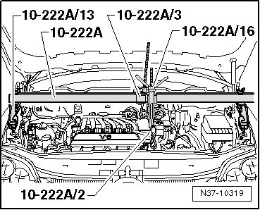 It is advisable to complete the work under the vehicle now. This prevents the weight of the engine from weighing on the (10 - 222 A) for a long period of time.