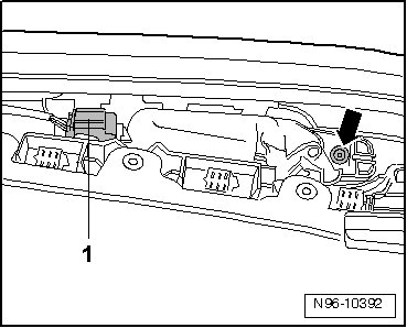 - Disconnect the connector - 1 - and remove the screw - arrow -.