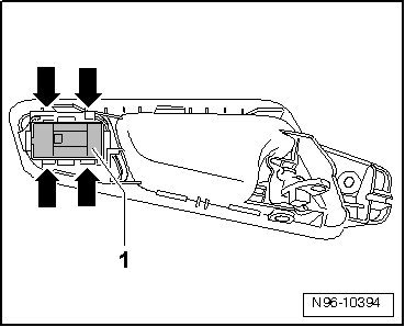 - Disengage retaining tabs - arrows - and remove Driver Interior Locking Button- 1 -.