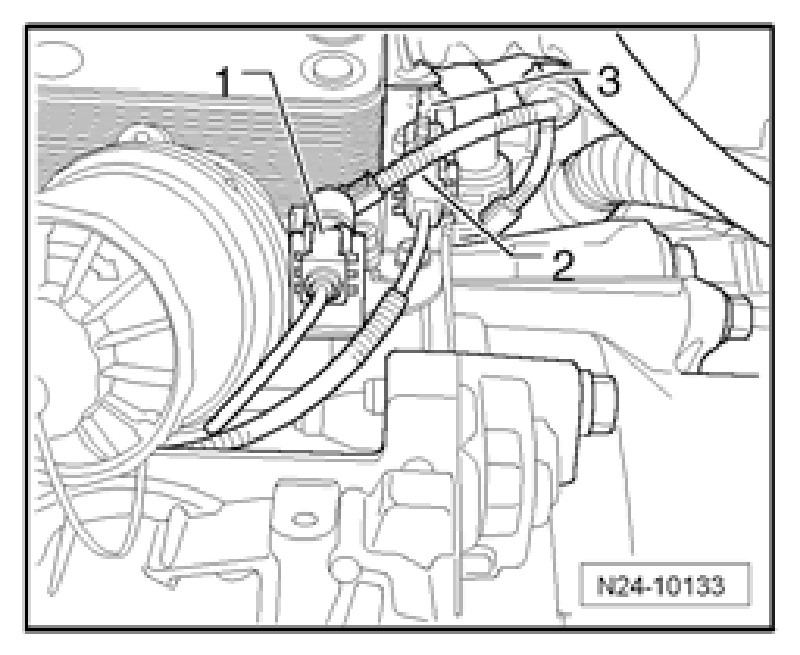 - Disconnect gray 3-pin harness connector -1- leading to Engine Speed (RPM) Sensor G28-.