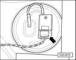 - Disconnect 10-pin connector -arrow- from Fuel Pump (FP) Control Module -J538-
