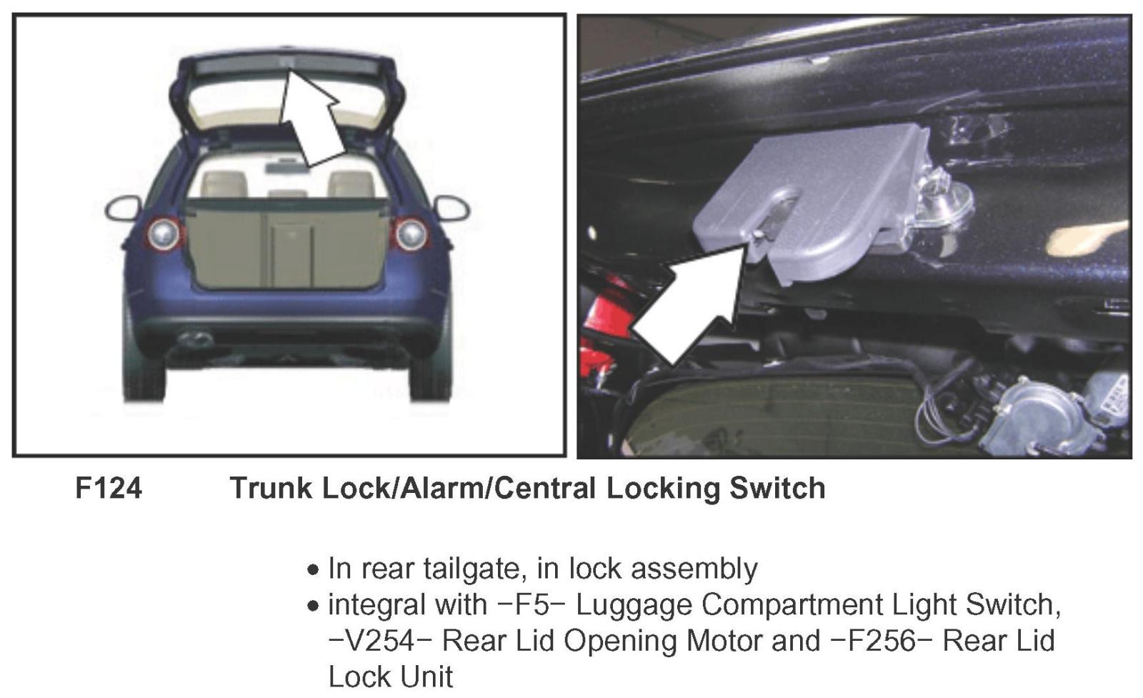Trunk Lock/Alarm/Central Locking Switch F124: