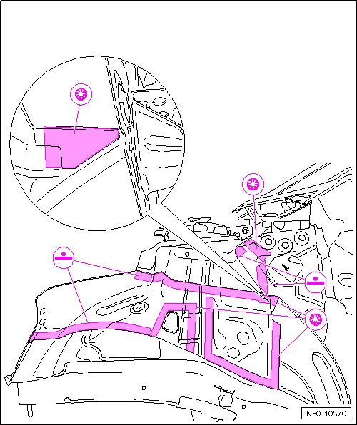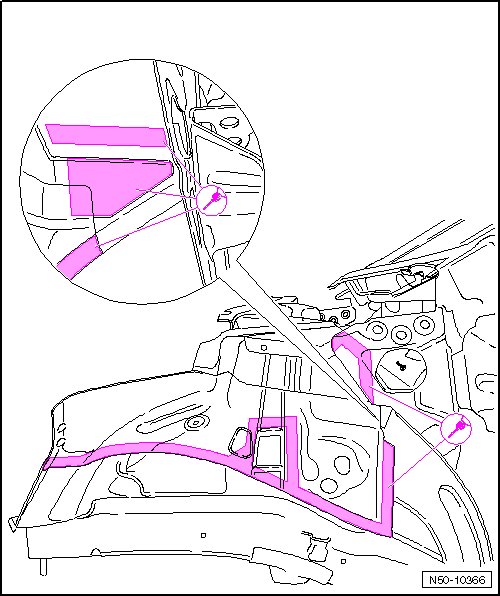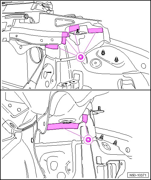- Original joint to front longitudinal member cover plate, loosen from wheel housing side to inside and to plenum chamber.