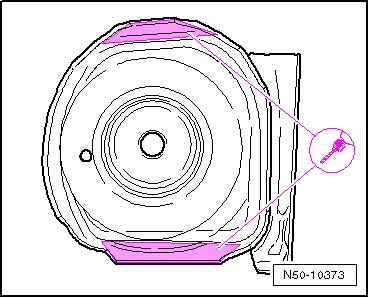 - Restore original joint between suspension strut mounting - 1 - and suspension strut mounting reinforcement - 2 -, straight line spot weld seam.
