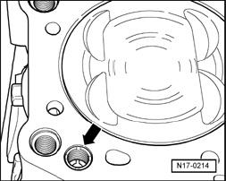 - Install a standard M8 � 1.5 bolt approximately 4 rotations into valve - arrow - and pull it out of bore.