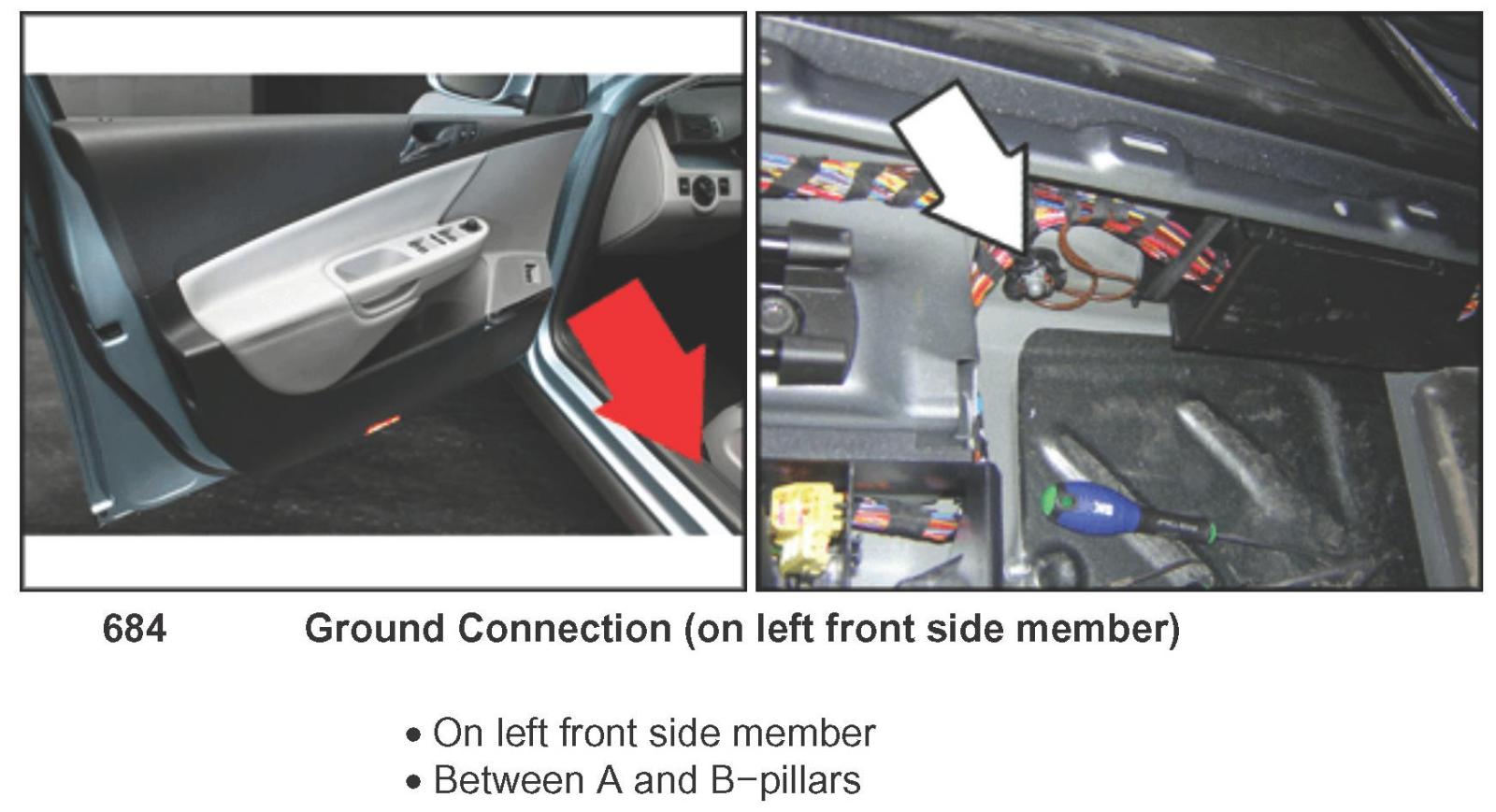 Ground Connection (on Left Front Side Member) 684: