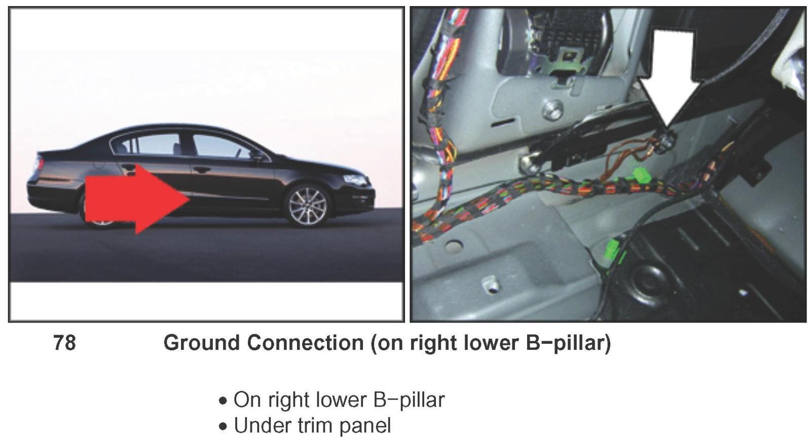 Ground Connection (on Right Lower B-pillar) 78: