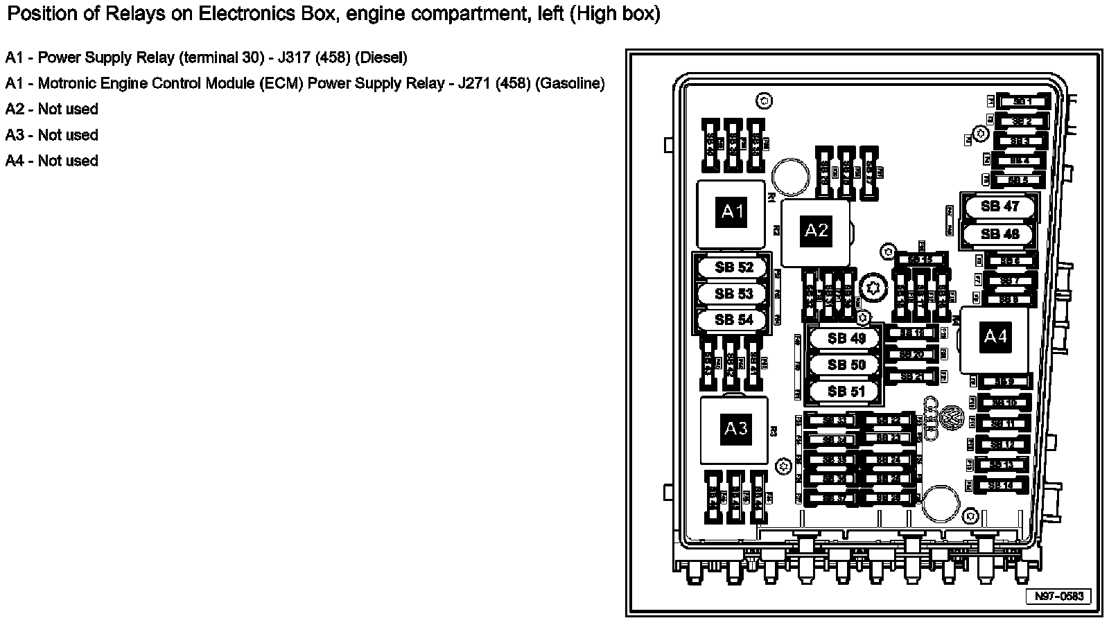 Position Of Relays On Electronics Box, Engine Compartment, Left (High Box):