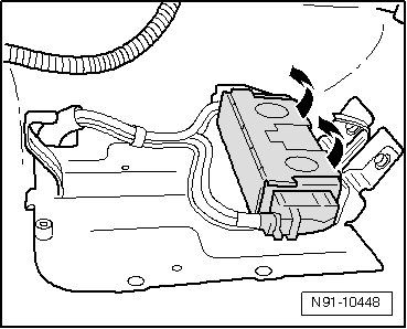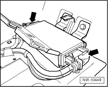 - Disengage connectors - arrows - at control module and disconnect them.