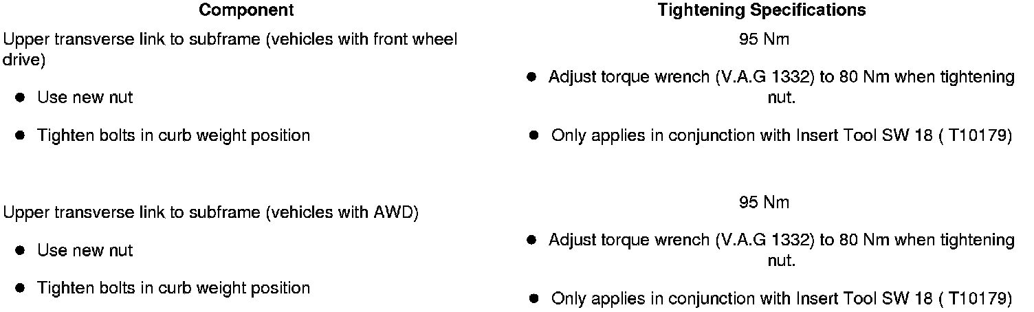 - Loosen nut - A - of threaded connection of upper transverse link at subframe.