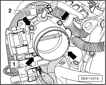 • When replacing, erase the adaptation values and adapt the Engine Control Module (ECM) to the throttle valve control module. Refer to vehicle diagnosis, testing and information system"Guided Functions".