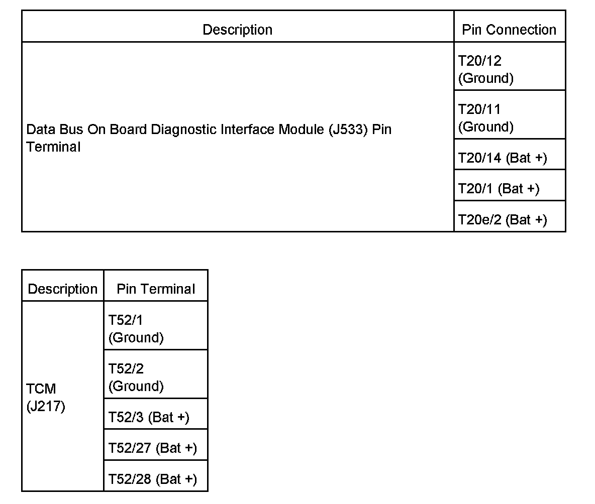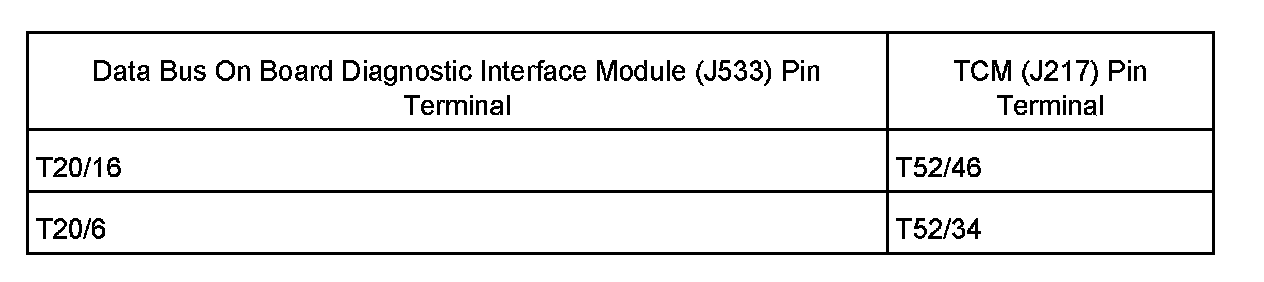 Yes: Test the Power Supply and Grounds circuits to Data Bus On Board Diagnostic Interface Module (J533, Gateway) and TCM (J217) listed below