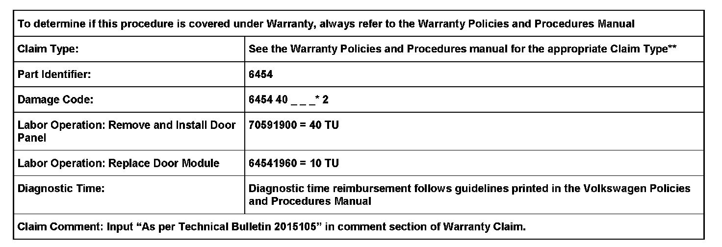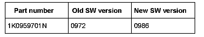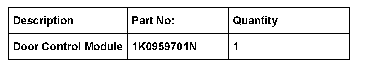^ Install driver door control module Part No. 1K0959701N with updated software level 0986 to correct the concern.
