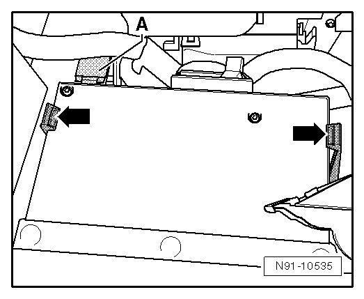 - Operate locking mechanism - A -, fold bracket in direction - B - and remove connector.