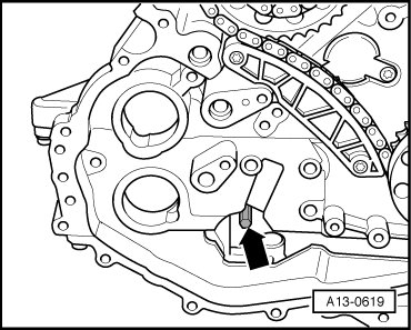 - Insert driveshaft - arrow - for oil pump into guide on oil pump.