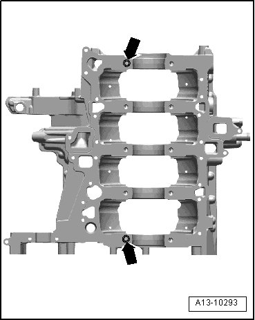 - Tighten cylinder block/guide frame sealing surface bolts, - highlighted in illustration but not numbered -, in a diagonal sequence to 9 Nm.