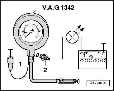 - Connect oil pressure gauge (VAG 1342) with adapter (VAG 1342/14) into hole for oil pressure switch.