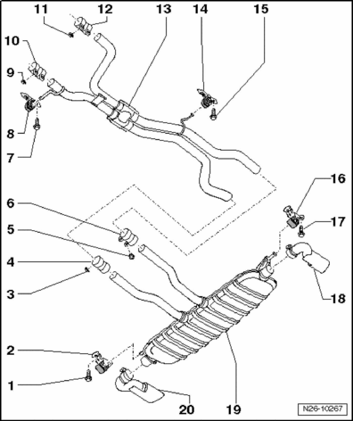 - Original equipment as one unit with rear muffler. For repairs, replace each separately.
