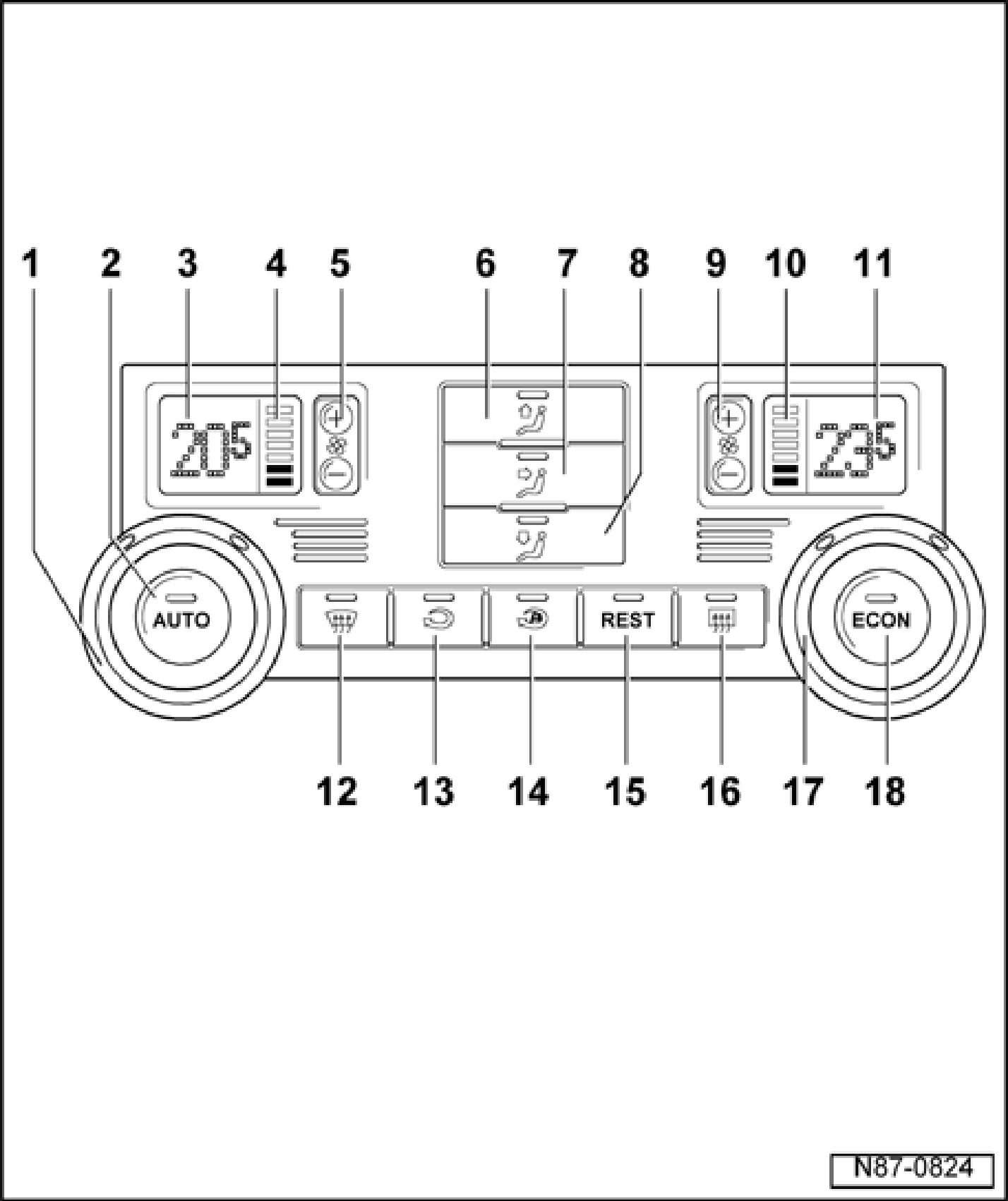 Dual-Zone Climatronic, A/C Control Head Display and Functions