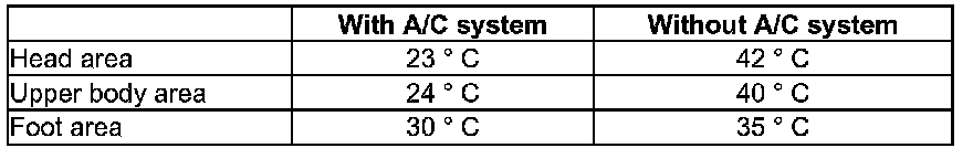 - Mid-size car temperatures after short traveling time (example: ambient temperature 30 degrees C in the shade and vehicle exposed to sunlight).