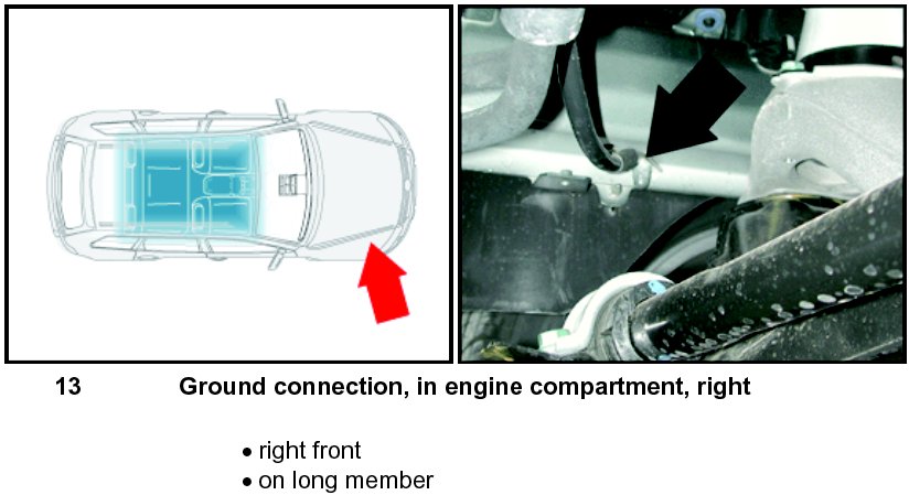 Ground Connection, In Engine Compartment, Right 13: